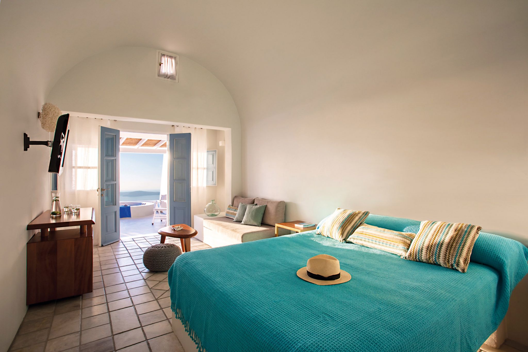 Boasting a serene, private location with amazing views to the fiery volcano and the magical sunset, Remezzo is the ultimate romantic hideaway for couples who are looking for a special place to spend their honeymoon. Combining the traditional Cycladic elegance with modern luxury, in the Remezzo rooms, suites, and villas, you will find the ideal ambiance to unwind and enjoy private romantic moments with your soulmate.